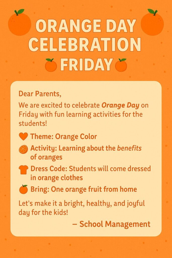 Parents greatly appreciated the efforts of the staff and the meaningful learning experiences provided to their children. Orange Day was not merely a color celebration; it was an opportunity for children to explore, observe, express, and interact in a supportive environment. Such events help lay a strong foundation for early learning while making education joyful and memorable.